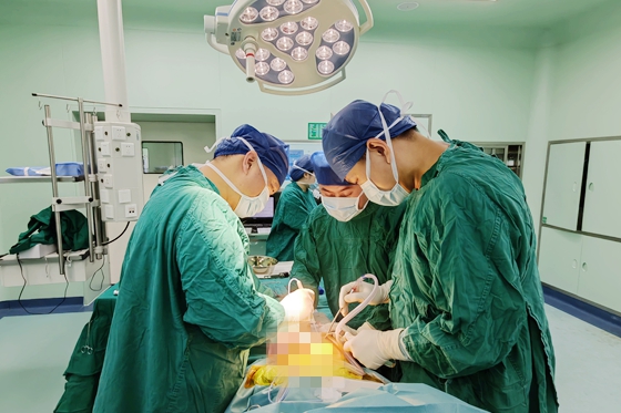 8天前,孙奶奶在家走路时不慎摔倒,随即出现左髋部疼痛严重,不能行走等症状,家属立即将其送至湘雅常德医院骨科就诊,诊断为“左侧股骨颈骨折”收住院治疗。孙奶奶既往有冠心病史数年,已实施冠状动脉支架植入术,长期服用阿司匹林及氯吡格雷抗凝药物。周天宝主任医师为确保患者安全,术前详细评估了患者病情,并邀请心内科及麻醉科医师为孙奶奶进行病情会诊,以确保患者手术安全。经充分术前准备,周天宝主任医师团队于5月5日为孙奶奶实施了“左侧人工全髋关节置换术”。