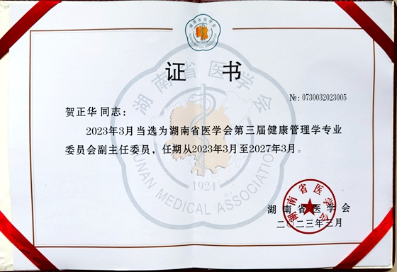 此次当选是贺正华教授继中华医学会健康管理学分会健康体检与评估学组委员、中国健康管理协会个案管理分会理事、中国老年医学会健康管理分会委员、湖南省健康管理学会第三届常务理事等学术任职之后,又一次担任健康管理学行业重要职务。