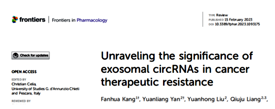 论文成果介绍了在细胞间通信过程中,外泌体作为细胞间通信的关键介质,可以通过自体或异源受体细胞内化,激活不同的信号通路,从而影响肿瘤的进展和治疗疗效,其中外泌体环状RNA(circRNA)是其中重要的角色。circRNA因其高稳定性和高浓度在肿瘤治疗中受到广泛关注,通过调控靶基因的表达,在癌症治疗反应中发挥着良好的功能作用。本文详细地论述了外泌体circRNA在癌症治疗耐药性中的意义及新出现的证据,表明来自外泌体的circRNA对多种癌症研究和治疗干预中所涉及的相关信号通路起重要的调控作用。此外,还讨论了外泌体circRNA的相关图谱及其生物学意义和对癌症治疗耐药性的潜在影响。