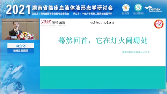 12月24日至25日,由湖南省医学会检验专业委员会主办的2021年临床血液、体液形态学学术研讨会在省会长沙举办。湘雅常德医院检验科向立化检验师在300多例病例稿件中脱颖而出,与另外6名成员一齐受邀在会上进行临床病例分享与交流。