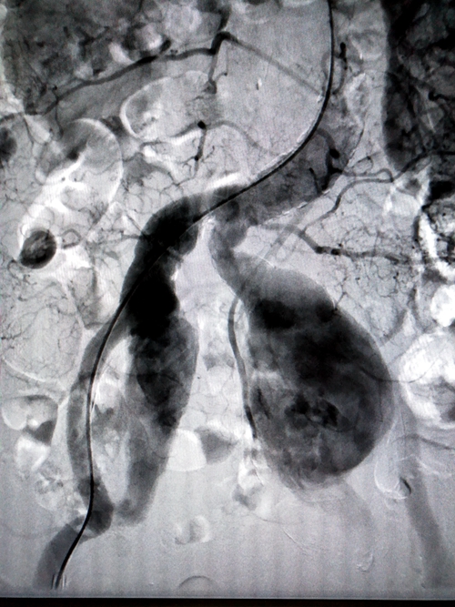 髂内动脉瘤常见于患有动脉粥样硬化及高血压的老年人,当动脉压骤然升高时会造成动脉瘤瘤腔继续扩大而破裂出血。髂内动脉瘤破裂轻则邻近组织暂时包裹,形成腹腔内血肿或腔脏器内瘘,逐渐出现失血性休克,更严重者大量血液流入腹腔伴重度休克,迅速致命,切不可掉以轻心。而腔内介入治疗技术相较于传统手术具有创伤小、恢复快、术后并发症和病死率低的特点,是高龄和有严重并发症患者而无法承受传统手术的首要选择治疗方案。