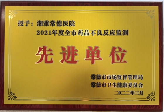 3月30日,2022年全市药品监管工作电视电话会议顺利召开,市人民政府副市长杨成英,市市场监管局党组书记、局长王苠睿出席本次会议。会议授予湘雅常德医院“2021年度全市药品不良反应监测先进单位”荣誉称号,授予肿瘤科刘兰、药剂科贺蕾艳、药剂科陈锋“2021年度药品不良反应监测先进个人”荣誉称号。据悉,这是我院继2020年以来再次获得该项荣誉。