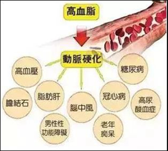 简单的来说,如果血液中的脂肪过多,就会沉积于血管壁,形成粥样斑块,久而久之就会造成动脉狭窄甚至是阻塞。而斑块的破裂也会激活我们自身的凝血系统,形成血栓,继而就会出现各种各样的心脑血管疾病,比如我们常说的心绞痛、心梗、脑卒中等。大量的研究也表明血脂异常是这类疾病的重要危险因素。