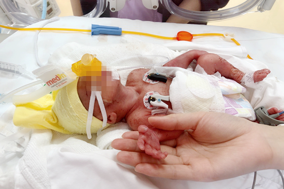 一年前,湘雅常德医院新生儿科收治了一名胎龄仅26+4周、体重870克的超早早产儿,他的名字叫安安,新生儿科医护人员亲切地称之为“掌心宝”。