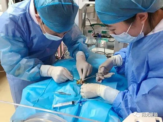 医护人员为患儿成功插入脐静脉置管导管