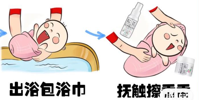 宝宝脐带未脱落,沐浴后需要进行脐部清理,注意保持干燥;