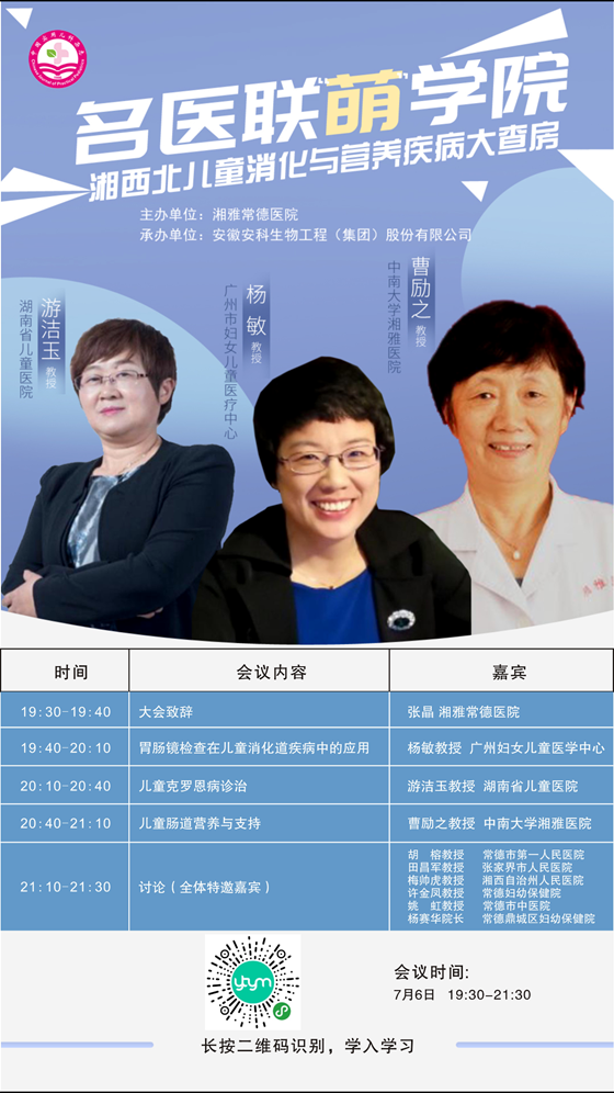 广州市妇女儿童医疗中心消化科主任杨敏教授及湖南省儿童医院消化科主任游洁玉教授先后在直播中分别就“胃肠镜检查在儿童消化道疾病中的应用”及“儿童克罗恩病的诊治”发表了精彩的演讲,分享了多个少见或特殊的病例,同时解答了参会人员的现场提问。据不完全统计,此次会议至少有100多人同时在线观看直播,会后湘西北多家医院的儿科专家积极参与了讨论。 湘雅常德医院儿科主任曹励之教授强调:儿童消化道疾病一直是儿科医护者需要致力解决的问题。在此特殊时期更不能固步自封,通过网络资源可以拓宽工作人员的眼界,接触到更多的病例,学习到更多的知识,以后这种形式的交流有可能成为主流形式。