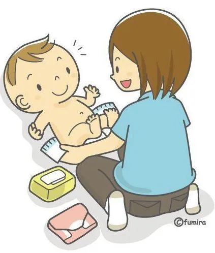 ① 婴儿大便后尽快更换尿布,每次大便后用柔软的布巾和水清洗尿布区;