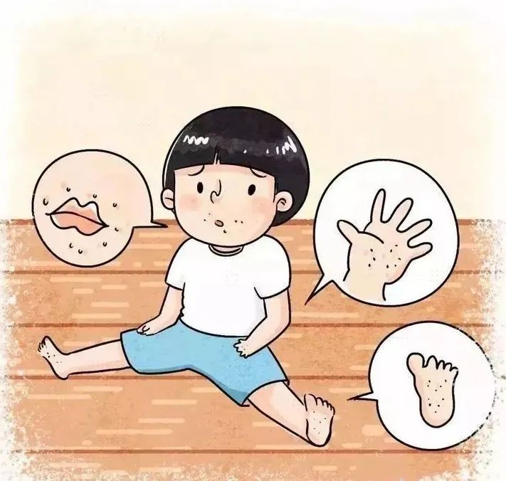 以手、足、臀部处斑丘疹和疱疹为主要特点,多伴有发热。手足口分为轻型和重型,一般轻型手足口可自愈,通常以发病后一周内传染性最强。