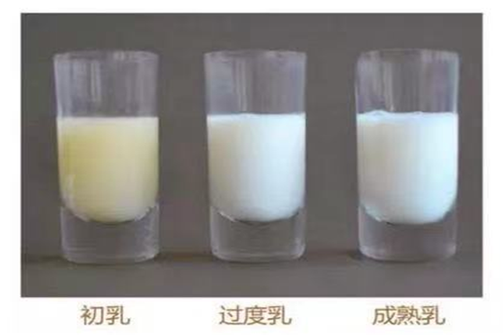 初乳是母亲产后5天内产生的乳汁,10天之后逐渐转化为成熟乳,期间为过渡乳。初乳颜色为黄色或橘黄色,比较浓稠,蛋白质浓度高并含有丰富的抗体。分娩后越早的乳汁中抗体含量越多,产后5小时内最多。成熟乳颜色比较淡。