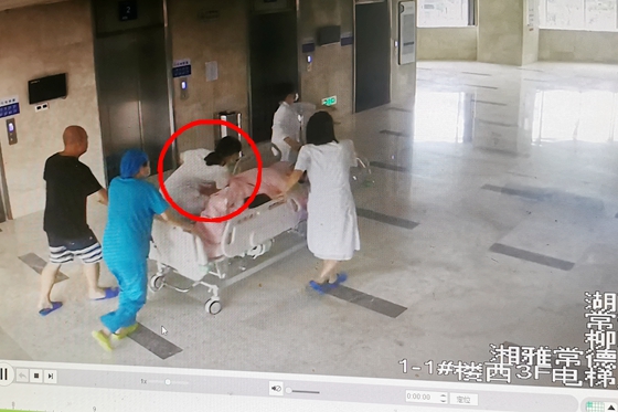 7月9日上午,湘雅常德医院产房一名产妇突发脐带脱垂,胎儿命悬一线,医生跪地27分钟生死营救成功从死神手上抢回婴儿。