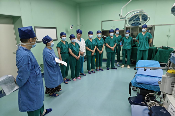 此次演练模拟真实病例场景,通过绿色通道的开启、抢救预案的启动以及各个环节之间的衔接,对胎儿宫内窘迫的诊断、抢救、报告、协调等程序进行演练。演练情景设置:患者王XX,女,38岁,停经38+3周,胎动减少1天入院,入院后行胎心监护III类,考虑胎儿窘迫,需行急诊剖宫产术。专家组考察了接诊、评估、检查、手术、新生儿抢救等整个过程。