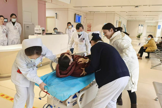 此次演练模拟了一名患者在候诊过程中突然心慌、出冷汗、面色苍白,随后晕倒、呼之不应的情况。
