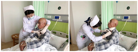 田湘娥教授每日在晨交班时特意叮嘱注意事项,护士长组织护理人员为其制定精准护理计划,管床医生精心观察病情变化,定期伤口换药。在全体医护人员共同努力下,宋大伯身上的导管陆续被拔除,伤口愈合良好,未出现咽漏等并发症,并于术后第10天经口进食。