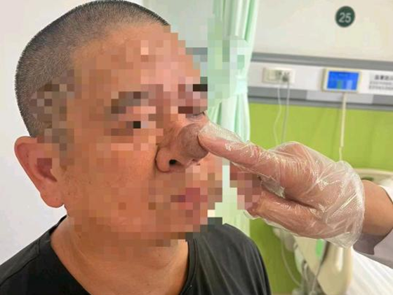 近日,湘雅常德医院耳鼻咽喉头颈外科来了一位“匹诺曹”叔叔。据悉,今年54岁的李叔叔于10年前发现自己的鼻子上长了一个肿物,起初,这个肿物不痛不痒,大小约0.5×0.5cm大小,去当地医院就诊,诊断为“血管瘤”,未作特殊处理。后来时间慢慢过去,这个鼻部肿物竟然也在悄悄长大,慢慢长到了3×3cm大小。李叔叔深受困扰,万万没有想到这个肿物竟然越长越大了,并且已经开始影响他的正常生活。