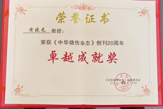 据悉,《中华烧伤杂志》由中国科学技术协会主管、中华医学会主办,是国内烧伤学术界唯一的全国性权威刊物。《中华烧伤杂志》于2000年创刊,从创刊开始黄晓元教授就担任了第一届、第二届编辑委员会编委,第三届、四届编辑委员会副总编辑,第五届编辑委员会顾问。