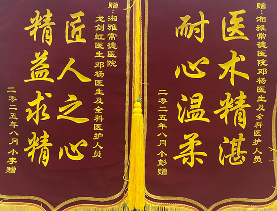 技术传承与口碑积累,是推动科室持续发展的核心动力。湘雅常德医院整形美容烧伤皮肤科(湘雅常德医美)始终秉持“传帮带”模式,通过“以老带新”不断夯实技术基础。近日,两例成功的双眼皮手术及患者送来的锦旗,正是这一人才培养机制成效的生动体现。