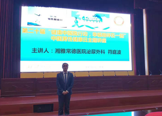 此前,泌尿外科于24日晚在学术报告厅举办了男性健康专题讲座,由符庭波医师主讲。他围绕男性功能障碍、男性不育、男性泌尿生殖炎症三大主题深入剖析了男性健康问题,并建议男性朋友生活有规律,健康饮食,适量运动,出现性功能障碍时不要因羞怯而拒绝就医。