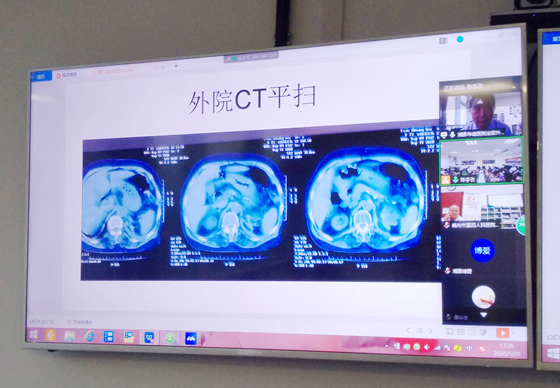 顿金庚主任及其泌尿外科团队将病情告知了家属,同时围绕这些问题展开了详细讨论。并且为了稳妥起见,科室向中南大学湘雅医院泌尿外科发出了疑难病会诊申请。5月20日下午三点,在泌尿外科示教室,许强主治医师通过云视频方式,向中南大学湘雅医院的专家教授汇报了基本情况,共享患者的病历资料,每位专家教授各抒己见、充分讨论,最后统一意见,为下一步的检查和治疗提供专业的帮助和解答。