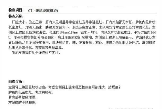 左侧肾上腺巨大肿块直径长达14厘米