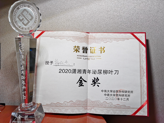 12月12日,由中南大学泌尿外科研究所、中南大学湘雅医院泌尿外科、湖南省湘雅医学期刊社有限公司承办的“2020年潇湘泌尿青年学术论坛暨中南大学泌尿、男科研究所成立五周年庆”在省会长沙召开。大会主要由理论授课、手术演示两大板块组成,旨在进一步探讨泌尿外科领域的基础和临床研究最新进展。其中,在手术演示环节,大会拟从30位医师中评选出3位柳叶刀金、银、铜奖。组委会构建了50位大咖评审团,从创新思维、手术技巧、操作流畅程度等角度深度观摩选手们的比赛过程。最终,我院泌尿外科蒋欣杰副主任医师荣获泌尿柳叶刀金奖。