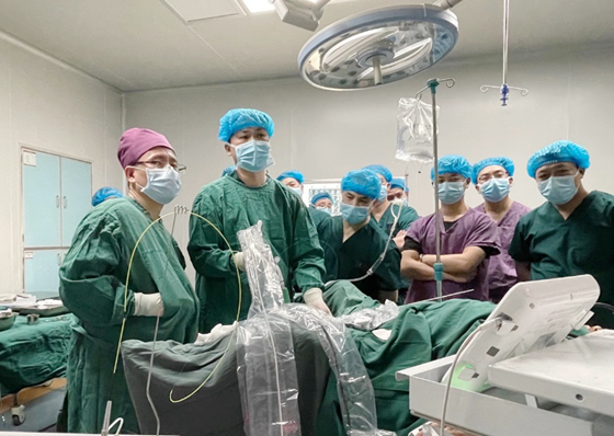 上午9时,手术组专家们开始进行公益手术,活动当天共完成公益手术12台。包括经皮肾镜碎石取石术、硕通镜下碎石取石术、输尿管软镜碎石取石术、龙激光前列腺剜除术+激光碎石、铥激光前列腺剜除术以及等离子前列腺剜除术等。其中,我院泌尿外科副主任医师蒋欣杰主刀,在团队的默契配合下,以其精湛而成熟的手术技巧顺利地完成了一例输尿管软镜碎石取石术。