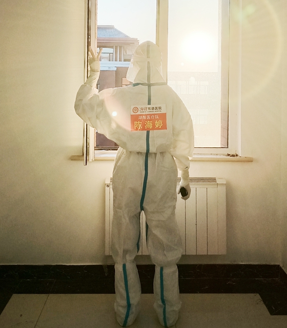 出勤的大巴从驻地酒店到方舱需要1个多小时,虽然这段车程会加重我们的疲惫,但这段路程却成为我最熟悉的长春风景。护理在方舱里负责消杀、监测患者体征、卫生、照顾患者一日三餐,看似简单的工作,在穿上防护用品后却变得异常艰难。防护服里出汗会增加暴露机率、让护目镜模糊,因此一件简单的工作时常不得不分很多次去完成。不过病区里的东北大哥们常常会帮我们分担一些体力活,这些简单却温暖的帮助真的能让我们可以松一大口气。