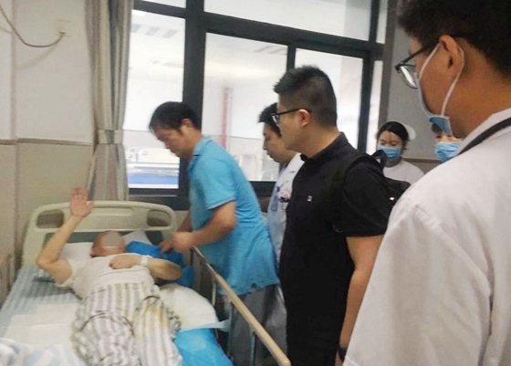 8月21日凌晨三点,从湘雅常德医院缓缓驶出一辆救护车,这辆救护车没有鸣笛,一路向北奔往目的地。此时的救护车上,躺在病床上的是57岁南京籍患者闫先生,因脑出血在我院接受完治疗,在异地独身一人的他只想返乡,一直守在他身旁的则是湘雅常德医院神经外科谭旭副主任医师和医务部同事。