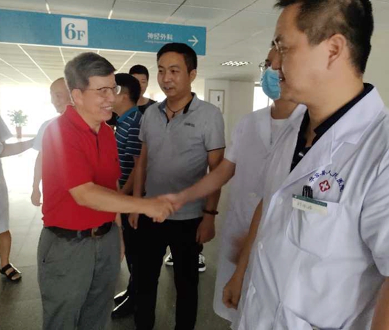 在华容县人民医院神经外科主任龙翔的陪同下,袁贤瑞教授一行6人全面考察了该院神经外科建设发展现状及当地群众需求。双方就学术交流往来、互帮互助等内容进行了友好商谈,袁贤瑞教授向兄弟医院分享了许多有价值的临床经验,还进行了查房工作,就部分疑难病例做了深入分析和讨论。