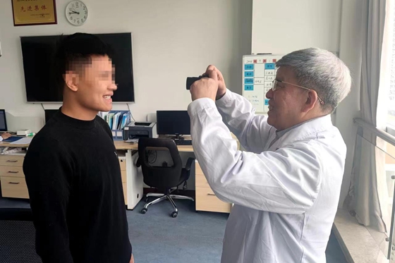 “大笑、闭眼、皱眉、抬眉、示齿、吹哨、鼓嘴,对,表情到位,恢复得非常好。”4月7日,袁教授拿着自己的相机很投入地跟26岁的小斌复查,像一位摄影师一样记录着患者的恢复过程。