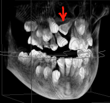 经过口腔CBCT影像学检查,小文的右上门牙果然是倒置阻生。伍栋副主任医师讲到,按现有情况,就算长一辈子都不可能长出来,而且随着埋伏阻生的时间越长,越容易出现囊肿。现在小文也是因为这颗埋伏牙引起了颌骨囊肿,于是被收治入院治疗。