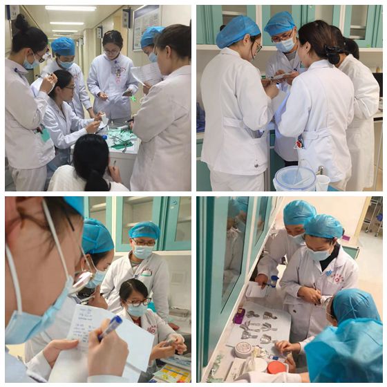 昨日,护士长习梅组织进行了第一次课程。本次课程的主题围绕:“口腔科常用器械及材料的认识”展开,分别由口腔科医生进行不同亚专科理论知识讲解,护士分组分区进行学习和实操,同时现场答疑,一个小组分区学习完成后再进行考核落实。