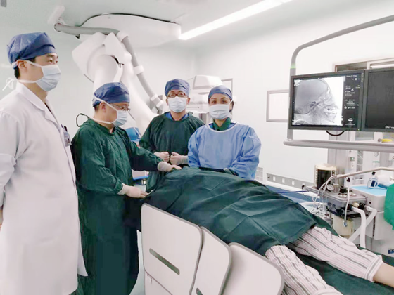 因患者高龄,长期患冠心病、慢性支气管炎、高血压病,同时左肾因结石导致萎缩,本人及家属拒绝行开颅手术治疗。经湘雅医院麻醉科程智刚教授、白念岳副教授及我院麻醉科孙志华主任联合会诊后决定行左侧三叉神经半月节微球囊压迫术,此手术创伤小、风险低、恢复快、患者耐受性好。经过充分沟通,患者及家属欣然接受。术前准备就绪后,于12月3日在全麻下行“左侧三叉神经半月节微球囊压迫术”治疗。术后患者疼痛完全消失,手术获得圆满成功。