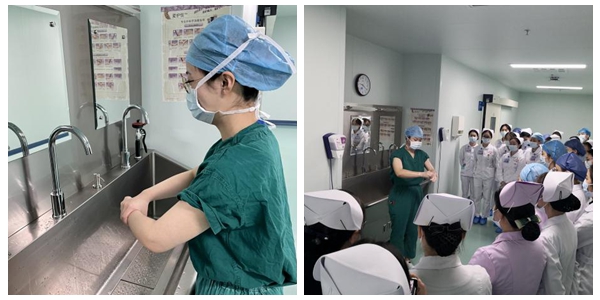 活动开始,由手术室护士刘佳带来题为《手卫生技术》的理论授课,她带领全院所有护理单元护理骨干从手卫生的起源故事逐步层层深入,了解手卫生的意义,对手卫生的行业标准进行解读等。随后由熊伟、吴叔韩老师演示操作,讲解操作要点。随后,培训人员参与操作考试,考试合格率为100%。