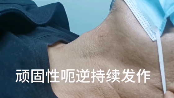 多种疾病都可能导致顽固性呃逆,如脑部的肿瘤、脑部的外伤、脑梗塞、脑出血、甲状腺病变、气管病变、肺部和心脏的疾病、胃肠道疾病以及过度焦虑等都可以诱发。而这位患者并不仅仅是胃着凉了,以前还有过脑梗史,目前还在口服抗结核药。前段时间还发现肠道肿瘤需要尽快手术,心情也非常焦虑,这些都是可能导致呃逆不能消除的重要原因。人体的膈肌分布在颈部和胸部两侧,只有双侧的膈肌都松弛下来,顽固性呃逆才能治好。打嗝也是机体对异常刺激的一种应急反应,交感系统的过度兴奋往往也是顽固性呃逆不能自行缓解的一个重要原因。因此,B超下膈神经与星状神经节阻滞治疗术对于顽固性呃逆有很好的治疗效果。