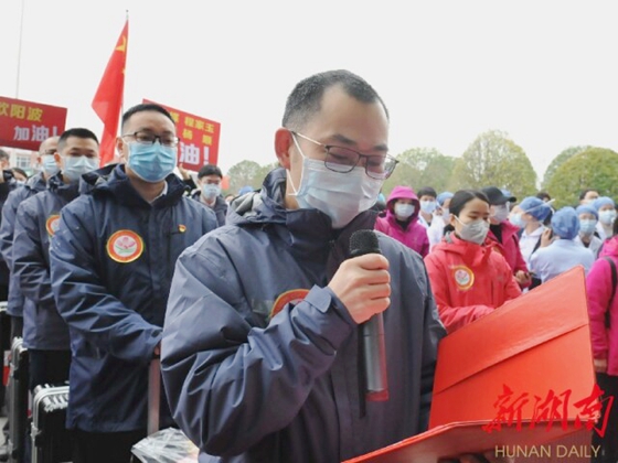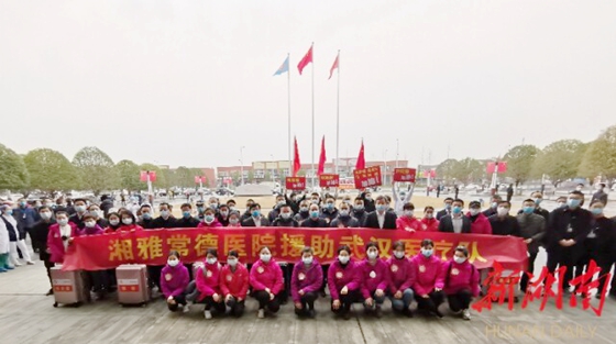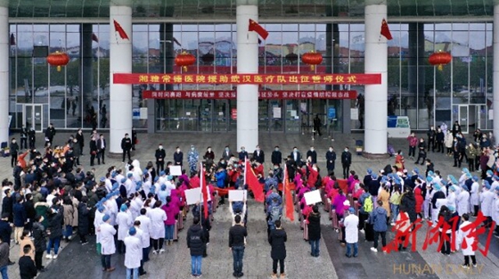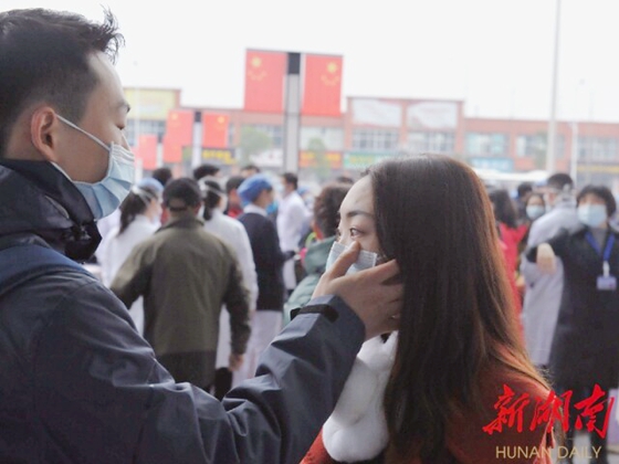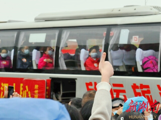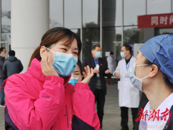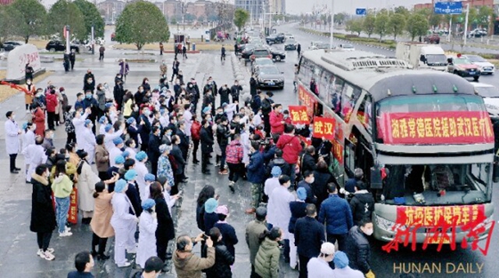 送别的现场,一句句深情的叮咛,一个个坚实的拥抱,令人动容。湘雅常德医院负责人告诉记者:“医院前天接到援助武汉的指令后,立即从500多名医护人员中挑选了35人驰援武汉。他们大多来自呼吸内科与重症医学科,具有丰富经验。愿他们的出征能为更多武汉患者带去希望!”