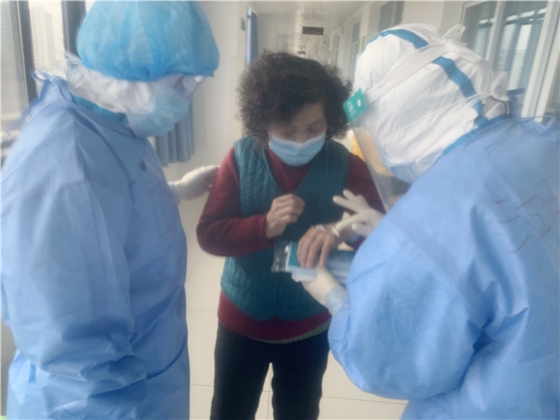 来到31床那个房间时,我开始喘着粗气,一位阿姨跑来让我给留置针加道胶布。担心我的手冰到她,我试图搓热双手,却发现隔着手套怎么也没用。于是,我对她说:“阿姨,手有点凉,您忍耐一下!”没想到她却和我说:“冒得事,手凉但是还是感觉到温暖!”