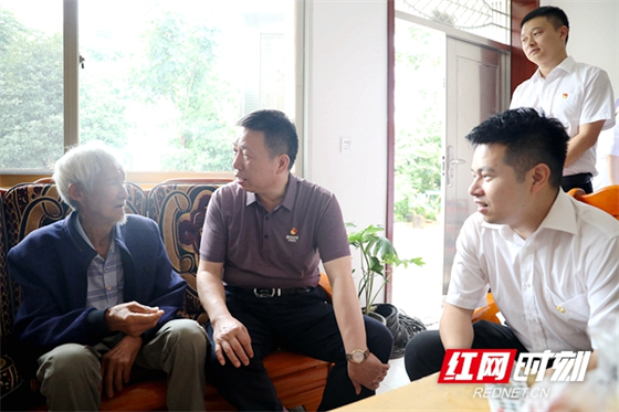 学党史,办实事。在党的百年华诞到来之际,6月30日上午,湘雅常德医院党委副书记周晓峰、副院长罗一凡率湘雅常德医院博士团走进乡村、社区,慰问抗战老兵和孤寡老人,将党的温暖送到他们的家门口和心坎上。