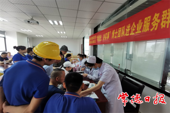 6月2日上午8时许,一场及时雨缓解了连日的燥热。位于常德高新区的常德国力变压器有限公司二楼会议室内,湘雅常德医院“博士医疗团”的4位专家刚刚坐定,前来问诊的员工们接踵而至。