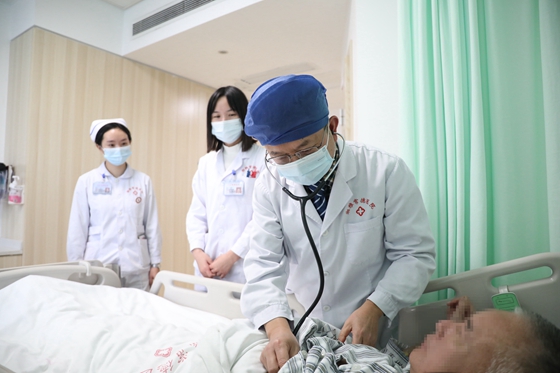 彭道地为病房患者查体。
