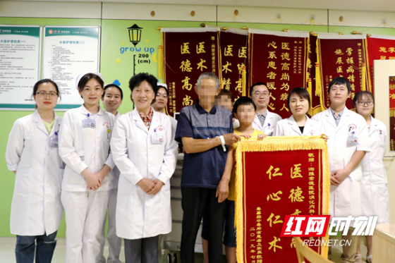 2021年5月,69岁的许奶奶由于反复出现黑便且严重贫血来到湘雅常德医院,此前她已多次在当地医院住院治疗均未明确消化道出血的病因。科室医师团队综合分析后考虑患者为小肠出血可能。为明确小肠出血的病因,为患者实施了小肠镜检查术,术中在空肠上段发现一长约6-8厘米长蒂息肉样隆起,息肉粘膜充血水肿,质脆,易出血。随后,科室医疗团队为患者实施了小肠镜下空肠息肉电切术。一个星期后,许奶奶康复出院。