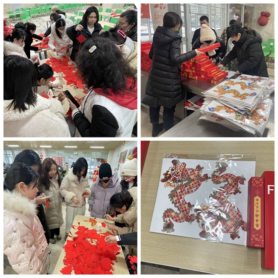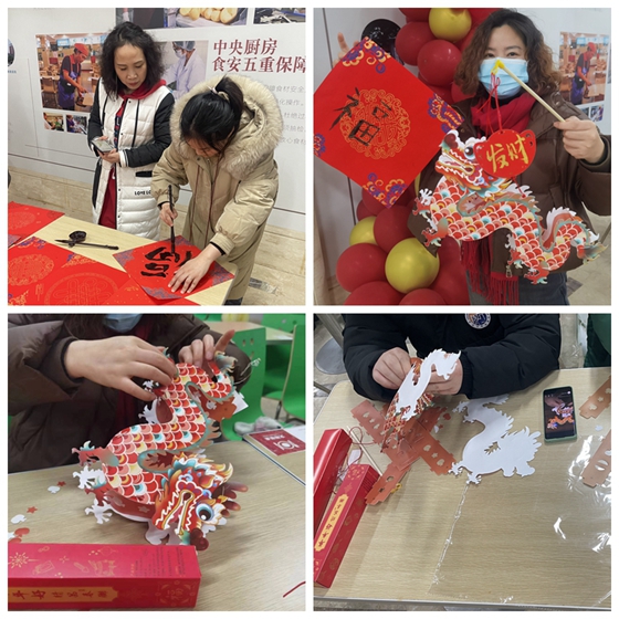 活动现场气氛浓烈的写福字、送春联吸引了许多职工观摩,书法爱好者挥毫泼墨,为同事们书写各式各样的福字、福卡,当天共送出一百二十幅春联。随后,在手工DIY做灯笼的环节中,工作人员把制作灯笼的材料发到会员手中,并详细讲解了灯笼制作步骤。会员们看到灯笼材料包后,个个都跃跃欲试,在工作人员的指导下,积极地动起手来。不一会儿,一盏盏漂亮的灯笼就呈现在眼前,龙年灯笼形状可爱喜人,显得十分喜庆,活动现场一片欢声笑语,洋溢着欢乐祥和氛围。