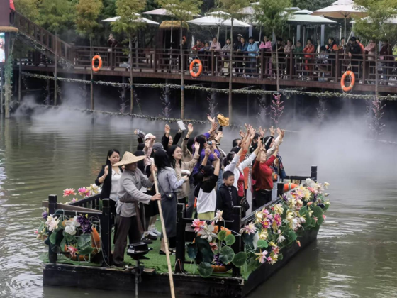 本次活动内容丰富,游船畅游毛里湖、多人秋干、天空之镜美拍打卡、玻璃桥穿越、水上乐园竞技挑战+网红摇摇桥、森林乐园等多个游乐项目供职工体验,还有《大湖水韵》沉浸式山水实景演出,赏心悦目、热闹非凡 。