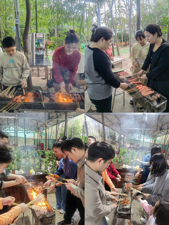 自助烧烤环节,职工们兴趣盎然、说说笑笑,分享着工作之余大自然带来的轻松与惬意。