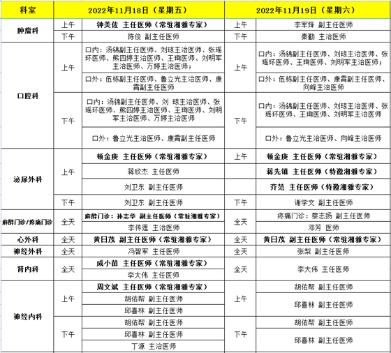 湘雅常德医院在建院五周年之际,将于2022年11月18日-19日在门诊大厅举办大型义诊公益活动,以答谢社会各界的关心、支持与关爱。义诊当天将邀请多名知名湘雅专家坐诊,所有科室门诊免挂号费。具体安排如下: