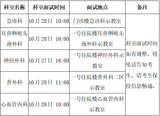 应聘人员参加操作考试后全部进入科室面试环节,操作考试成绩作为综合面试参考依据。