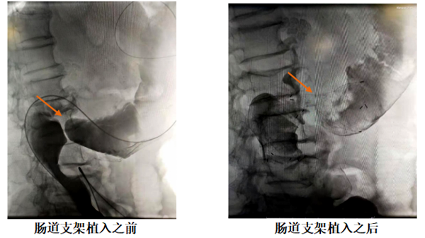 牟爷爷到达湘雅常德医院后,急诊科立即开通绿色通道,为其完善检查,制定诊疗方案。考虑到患者83岁高龄,据家属所述牟爷爷已经20几天未进食,全靠营养针维持,且分别于2008年和2010年做过结肠癌根治术和肠黏连手术,目前情况不适合再实施高风险的外科手术治疗。经放射介入科会诊后,介入肠道支架植入可能是最为有效和安全的治疗方式。