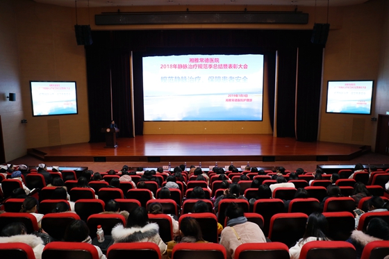 1月3日,我院2018年"静脉治疗规范季"项目总结暨表彰大会在学术报告厅隆重召开,肖目张副院长、冯梅护理部主任、范丽莉和王耀辉科护士长、临床科室护士长、静疗小组全体成员及全院非值班护士共300余人参加了会议。