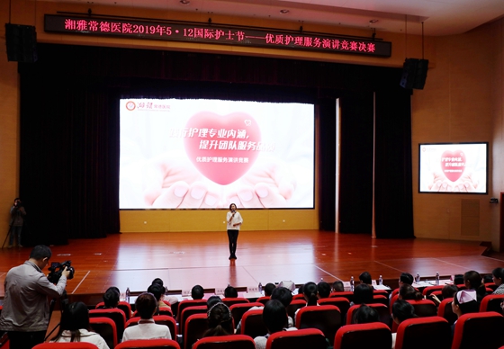 为庆祝“5·12”国际护士节,表彰奖励优秀的临床护理单元和护理工作者,践行我院“规范、安全、温暖人心”的护理理念,进一步深化优质护理服务工作内涵,提升护理服务水平,充分发挥护理团队在三级综合医院评审中的作用,促进我院护理工作的规范化、常态化和可持续发展,湘雅常德医院护理部联合院工会、党政办和后勤保障部在全院范围内开展以“践行护理专业内涵,提升团队服务品质”为主题的“5·12”国际护士节系列活动。2019年5月6日,在学术报告厅举办了以优质护理服务为主题的演讲比赛决赛。