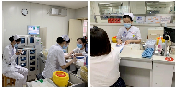 活动第一阶段时间是2021年3月-9月,为外周静脉穿刺强化培训阶段。本次强化培训主要从三方面组织开展。一是科室进行一对一穿刺带教。护士长通过充分评估与沟通后,将穿刺经验不足、心理素质和沟通交流欠缺、患者反映“穿刺技术有待提高”的护士作为重点培训对象,并指派穿刺和沟通经验丰富的老师理论授课、床旁示范、重点帮扶,培训者也利用休息时间参加夜班采血、主动对接其他责任组患者的静脉输液等,大部分科室低年资护士静脉穿刺数量多达1000余次,静脉穿刺技术突飞猛进;二是门诊注射室轮岗培训。护理部将静脉穿刺机会少、静脉穿刺经验明显不足的护士协调安排至门诊注射室采血岗培训,每人轮训2周;据统计,12名轮岗低年资护士人均采血次数达630余例,静脉穿刺一次成功率达95%;三是成立“采血服务志愿者流动岗”。鼓励年轻护士利用自己的休息时间去儿科门急诊或健康管理中心进行志愿采血服务;4-9月共有20个科室、30名护士参与,其中,志愿服务次数最多者达13次,采血人次多达530人次。通过以上举措,使我院年轻护士们积累了较为丰富的静脉穿刺经验,护患沟通、应急处理等综合能力也得到很好的锻炼与提升。